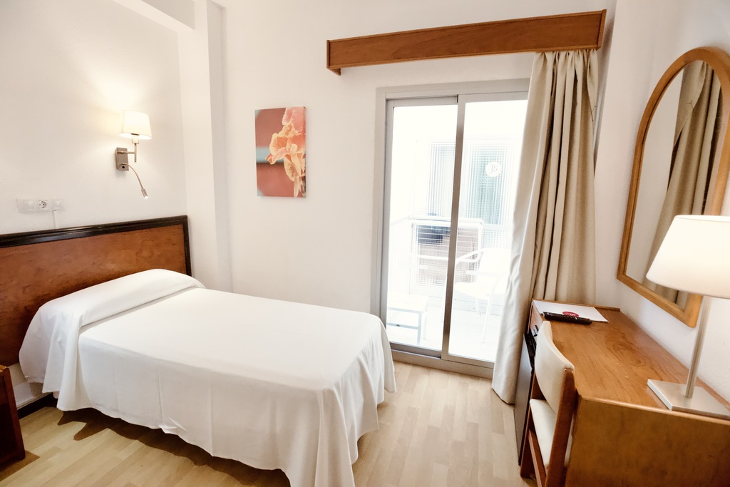Cómodas y funcionales, estas habitaciones disponen de una cama individual de 90 cm, balcón con mobiliario exterior y baño privado con amenities.